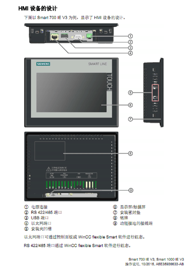 1、 西门子HMI SMART LINE V3系列宽屏7寸支持横向和竖向安装方式;